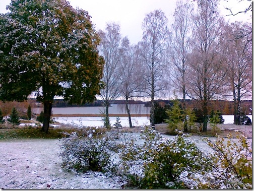 Yesterday we took the car and drove to the only store we could find, to buy a Norwegian flag. It came up the minute we got home. And I stood there, afterwards and just cried my eyes out. I was so touched by seeing �my� flag up there and I got so home sick. Now I just look at it and it is simply so beautiful. The bright red lightens up the sky! I�ll take a photo later, when it�s a bit more wind, now it just hangs there, resting.
